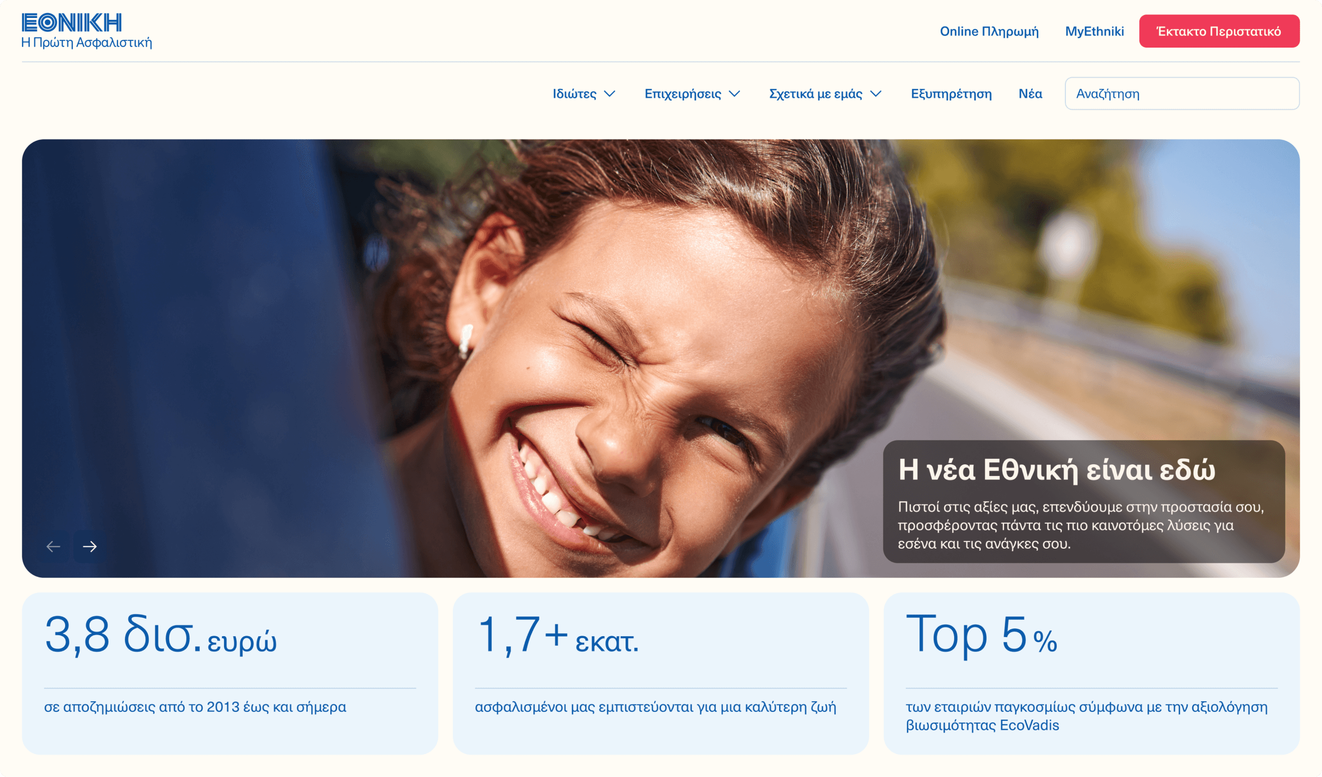 Governed by clear content hierarchy, modularity, contemporary design principles and resolution-agnostic functionality, Ethniki Insurance’s new website reflects the historic brand’s transition to a new era, where customers’ needs are heard, valued and supported through clear, consistent and accessible communication.